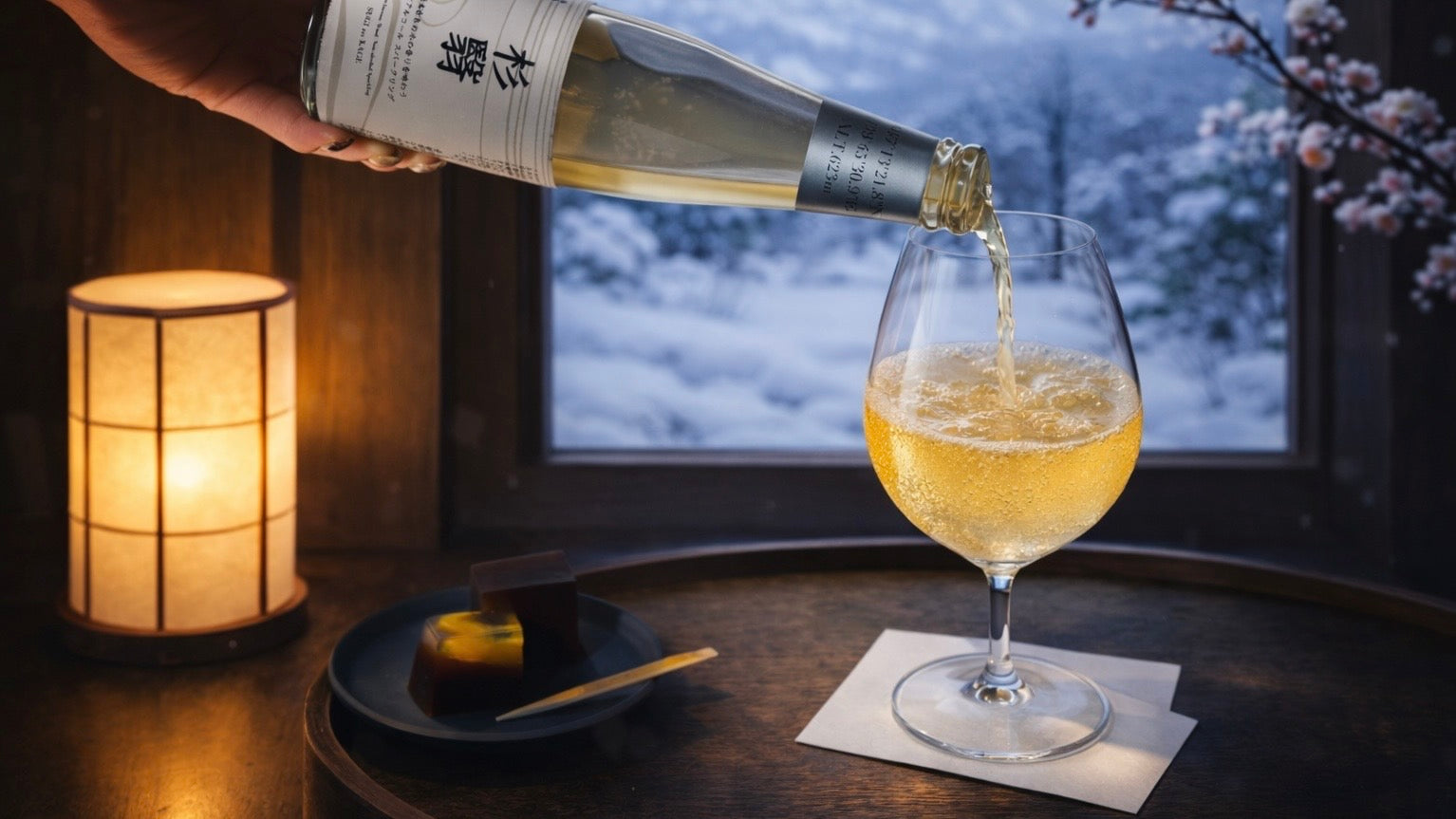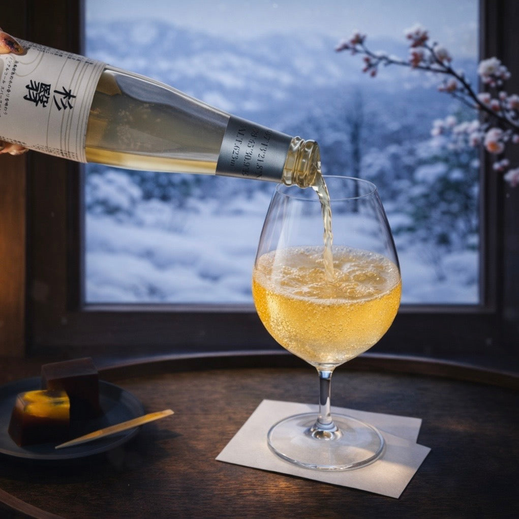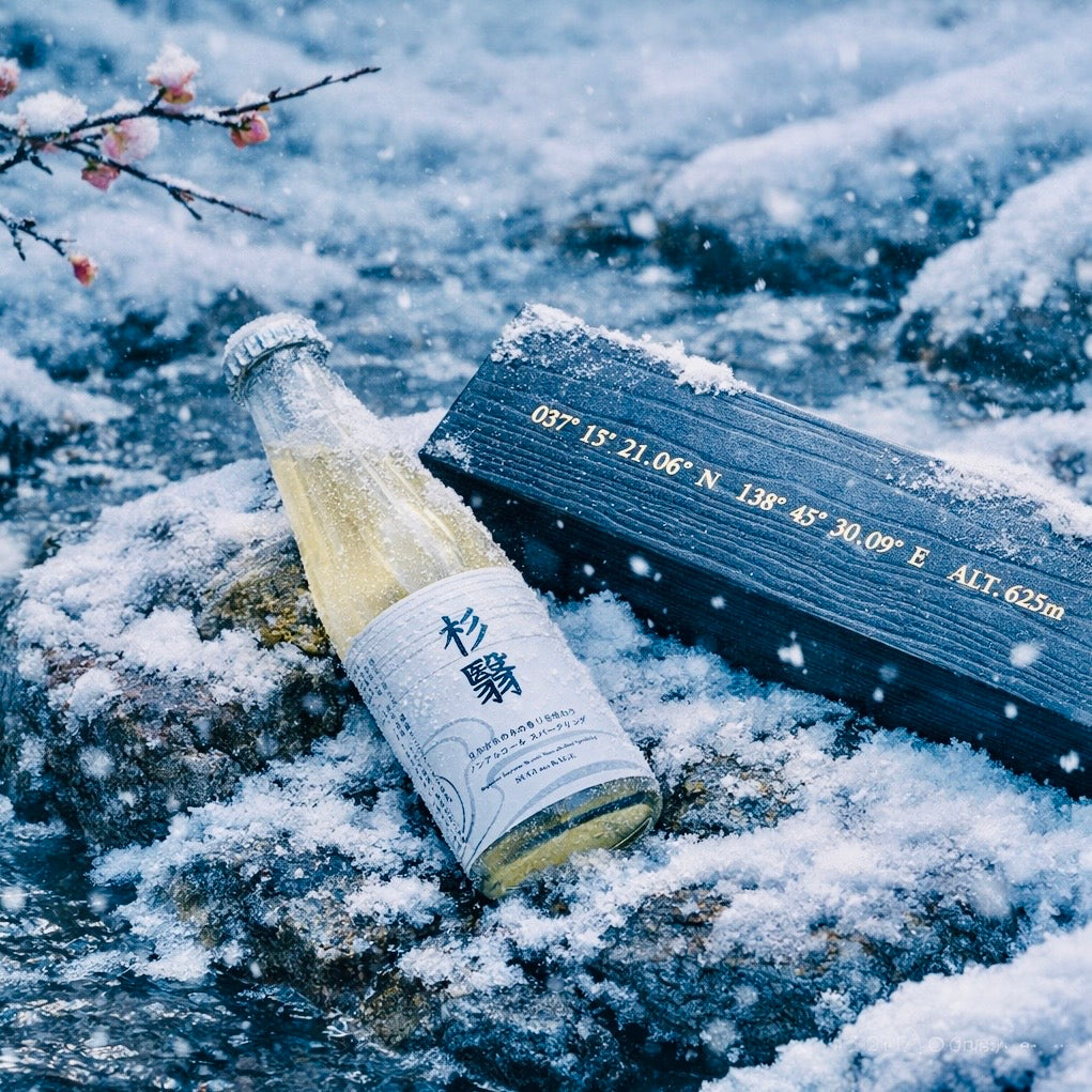 心をほどき、感覚を澄ますひとときへ——ノンアルコール スパークリング《杉翳》は、日常を離れた“杉林の旅”へと貴方をお誘いします。